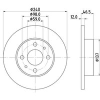 Hella Bremsscheibe Vorderachse Voll Autobianchi: Y10 Fiat: UNO, Panda, Fiorino, Duna 8DD355101-131 Bohrbild/Lochzahl: 04/06 Bremsscheibenart: Voll Bremsscheibendicke [mm]: 12 Durchmesser [mm]: 240 Ergänzungsartikel / Ergänzende Info 2: ohne Radbefestigungsbolzen Ergänzungsartikel / Ergänzende Info 2: ohne Radnabe Gewicht [kg]: 3,7 Höhe [mm]: 46,5 Lochkreis-Ø [mm]: 98 Mindestdicke [mm]: 10,8 Technische Informationsnummer: 50908 Zentrierungsdurchmesser [mm]: 59 OE Nummern: Fiat: 5961814, 71738423