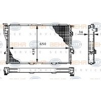 Hella Kühler, Motorkühlung Bmw: 7, 5 8MK376711-114 Breite [mm]: 438 Fahrzeugausstattung: für Fahrzeuge mit/ohne Klimaanlage Länge [mm]: 650 Tiefe [mm]: 34 OE Nummern: Bmw: 17112246012, 2246012