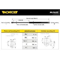 Monroe Gasfeder, Koffer-/Laderaum Alfa romeo: Mito ML5655 Ausschubkraft [N]: 320 Hub [mm]: 165 Länge [mm]: 456 Standrohrdurchmesser [mm]: 8 Zylinderbohrung [mm]: 18,5 OE Nummern: Alfa romeo: 50508706, 50515442 Alfa romeo: 50508706, 50515442 Triscan: 871015241