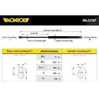Monroe Gasfeder, Koffer-/Laderaum Audi: A4 ML5747 Ausschubkraft [N]: 530 Hub [mm]: 198 Länge [mm]: 490 Standrohrdurchmesser [mm]: 8 Zylinderbohrung [mm]: 18,5 OE Nummern: Audi: 8E9827552G, 8E9827552H
