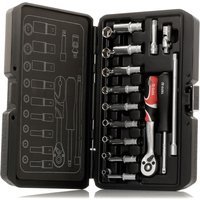 Länge [mm]: 150; Maße Antriebsvierkant [mm (Zoll)]: 6,3 (1/4); Material: Chrom-Vanadium-Stahl; DIN/ISO: 3121; Schlüsselweite: 4-13; Anzahl Werkzeuge: 23; Antrieb [Zoll]: 1/4