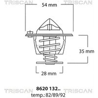 Triscan Thermostat, Kühlmittel Saab: 9-5, 9-3, 9000 862013282 Kenngröße: 3 Huls bundventil Öffnungstemperatur [°C]: 82 OE Nummern: Saab: 5958756, 7502297, 9336835