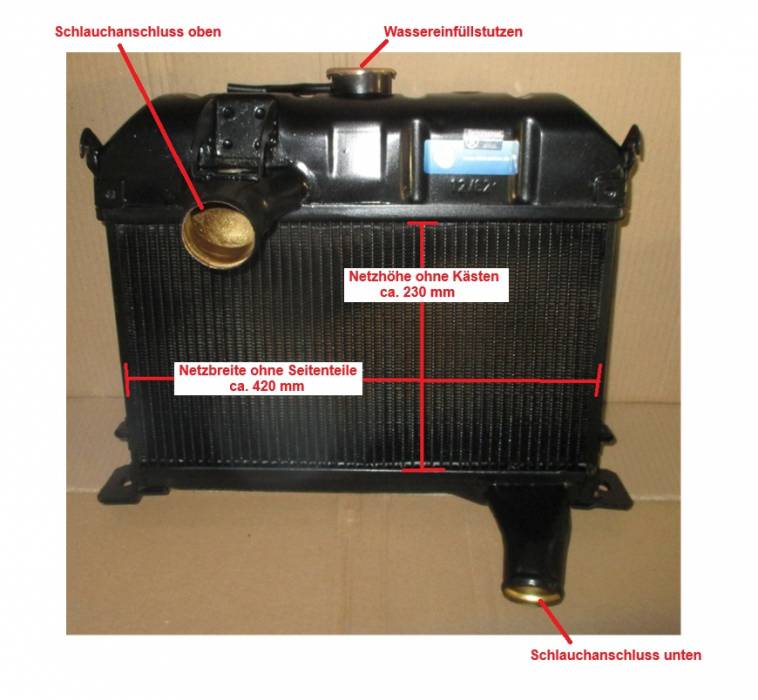 Die hier genannten Abmessungen beziehen sich nur auf das Kühlernetz ohne Anbauteile wie Kästen (oben und unten) und ohne die Seitenteile (rechts und links) am Kühler.