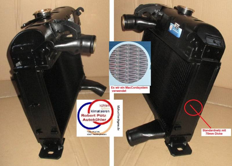 Da es sich bei unserem Angebot / Austauschkühler um Handarbeit handelt und teilweise Altteile von ihrem Altkühler verwendet werden ist es möglich das AT-Kühler kleine Schönheitsfehler haben können die bei einer Serien- und Fließbandfertigung von Neuteilen so nicht vorkommen.